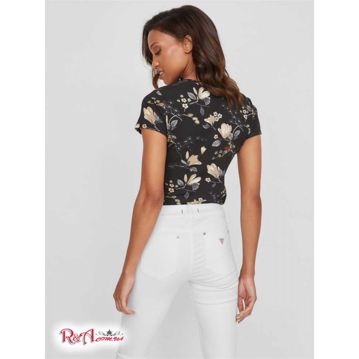 Жіночий Топ GUESS Factory (Cerise Studded Split-Neck Top) 64163-01 Реактивний Чорний Мульті